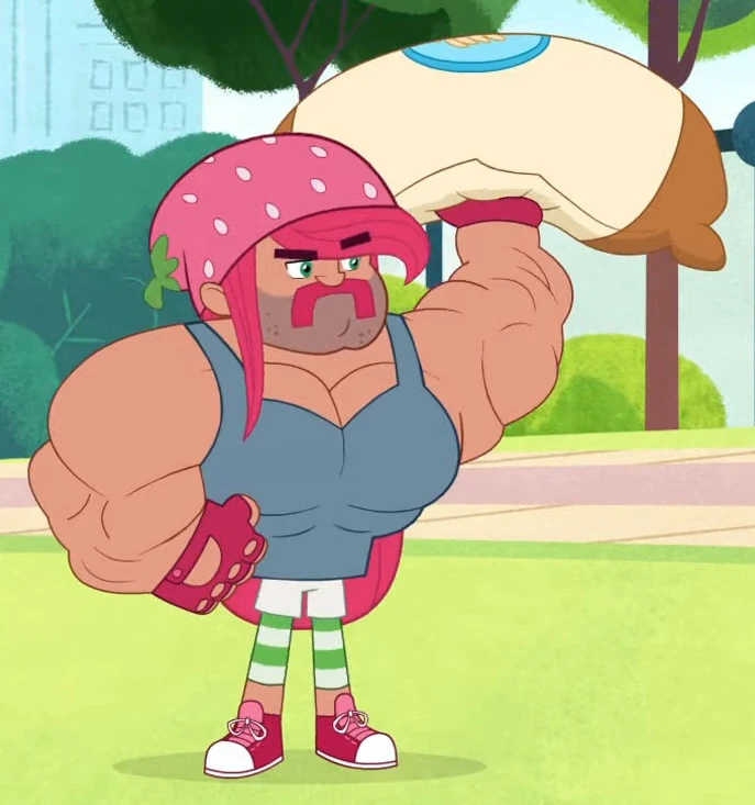 Bodybuilder Berry is a recurring extra in Strawberry Shortcake: Berry in the Big City. The character made his debut in Meet Huckleberry Pie and is often seen in the background is scenes to fill up space. He is recognizable by his huge muscles and his coincidental similarities in appearance and fashion sense to Strawberry Shortcake.