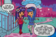 In Berry in the Big City, Strawberry was the one who encouraged Cherry to sing onstage, which allowed Cherry to embrace her new role as lead singer. Her future appearances show her as being more confident in herself due to this, and she is always happy to see Strawberry whenever they meet.