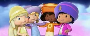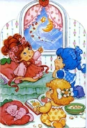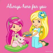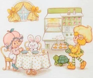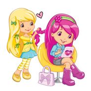 In 2003, Lemon Meringue debuted with Raspberry Torte in The Sweet Dreams movie and they are best friends. They used to live somewhere else until they moved to Strawberryland. They are often seen sitting together, or walking together and holding hands. Raspberry often makes decisions and speaks for Lemon in the 2003 series. Angel Cake almost made the two of them leave by rudely stating that they were new who weren't completely invested in the town and didn't deserve to eat from their community Strawberry Garden.
