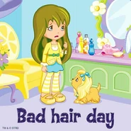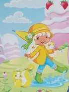 "Lemon Meringue might grow up to be Strawberryland’s most acclaimed fashion model someday, but she will probably not be winning any international prizes related to rocket science. Lemon is always just a beat or two slower than the other girls in understanding what’s going on around her. When she does finally catch up with the obvious, she adds her trademark line “I knew that”. Her problem is that she is constantly working on looking just a bit better. She is always primping and preening, fixing her hair, or checking her look in any available reflective surface. She is a genius at looking good, and all the Strawberryland friends know that for a makeover or a new ‘do, the place to go is Lemon’s famous beauty shop on Lemon Lane. Though a bit “blonde”, she is also a sweeter-than-lemonade girl who has a heart of platinum." - 2003 character description provided by American Greetings.