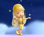 In winter episodes, Lemon still has her inventor goggles, but wears a green puffy jacket with off-white stripes across and a lemon graphic on her shoulders, a grey belt with a lemon buckle, yellowish-orange snow pants, and yellow winter boots with laces.