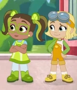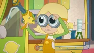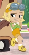 In summer episodes, Lemon still had her inventor goggles, but now wears an oversized white T-shirt with a green collar and cuffs and a sunglasses-wearing sun graphic on the front, yellowish-orange cargo shorts with the legs rolled above her knees, and yellow slip-on shoes.