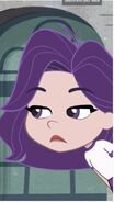 In winter episodes, Sour retains her usual clothes but wears a white beret, a white winter coat with purple outlines, and a light purple scarf over it.