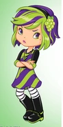Sour Grapes is a new incarnation of the Strawberry Shortcake antagonist of previous generations. These versions of Sour Grapes are the same age as Strawberry and friends and are generally shown to be not an evil villain, but still not entirely nice. However, she always changes and grows into a better person over time, as she desires to be friends with Strawberry. For information on her older counterpart, see "Sour Grapes".