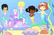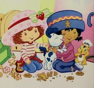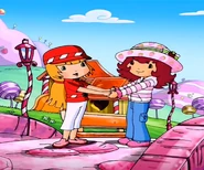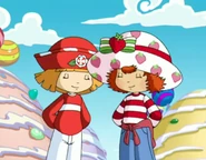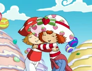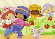 Strawberry tends to make many new friends in every special. During her stay in Big Apple City, Strawberry would meet her best friend, Orange Blossom, along with several others who all move back to Strawberryland with her. In Pets on Parade, she befriended Angel Cake and helped her find a pet in Souffle the skunk. Before her housewarming surprise, Strawberry made six International Friends from other countries, Crepes Suzette from Pearis, Cafe Ole from Mexicocoa, Almond Tea from China Cup, Lem and Ada from Pickledilly Circus, and Mint Tulip from Hollandaise, who all helped her move into her new house. She met the Baby without a name who she uncovered the mystery of Fig Boot with, and in the final special, she met the Berrykins and helped rescue them from the Purple Pieman.