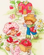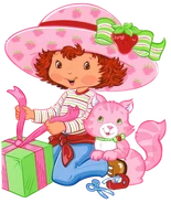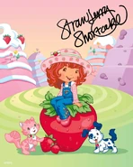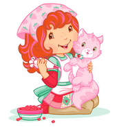 | “ | Strawberry Shortcake is a bright and energetic little girl with red hair and freckles with a big, adorable smile. Strawberry is kind, resourceful, and always ready to help a friend in need. With her pet cat named Custard normally by her side. She usually wears a sweet, red dress with a white pinafore, and a pink bonnet decorated with strawberries. In her earliest adventures, Strawberry's home was a shortcake surrounded by well-tended strawberry vines, in 1983 she moved into her "Berry Happy Home", a large and ornate home. | „ |