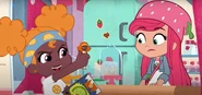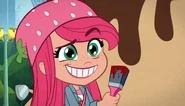 Strawberry also tends to suffer from bouts of anxiety and discouragement, which can affect her baking mojo. When the Purple Pieman, someberry she looked up to, dismissed her as not being a true baker, Strawberry was left depressed and desperate to prove herself to him, which her friends had to snap her out of and make her realize her emotional well-being shouldn't rely on the opinions of others. "Strawberry's Shortcake" establishes that Strawberry is afraid of baking strawberry shortcake, as she believes she has to make it absolutely perfect due to the dish being her namesake, and that if she messes it up at all she isn't good enough to be a baker. She does try to make strides to overcome these anxieties, and with the help of her friends, she picks herself back up and sets off to do everything with confidence. By the time of "Bake The World A Better Place", she's fully overcome it and finally baked a strawberry shortcake she's satisfied with.