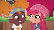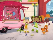 As the series goes on, more and more friends move to Strawberryland, who will occasionally tag along with Strawberry in certain episodes. Strawberry would also often travel to new places where she would end up meeting new friends herself. "Meet Strawberry Shortcake" shows how she met her core group of friends in Strawberryland, as she came across them and their homes while trying to set up a birthday party for Apple Dumplin'. Season 2 episode "Here Comes Pupcake" would establish how she came to adopt Pupcake, though there is a noticeable discrepancy regarding the timeline of the episode, as the episode claims she adopted Pupcake sometime after meeting her friends, but "Meet Strawberry Shortcake" showed that she already owned Pupcake around the same time she met her friends. Like her previous incarnation, Strawberry has friends from different countries, though only Almond Tea (now renamed Tea Blossom) and Crepes Suzette return from the 1980s specials. Her new International Friends are Frosty Puff from Niceland, and Tangerina Torta from the Tangerine Bosque. Strawberry often has to act as the mediator and voice of reason in many episodes, especially the ones where her friends come into conflict with one another. There are a few occasions where she gets caught up in a conflict herself, such as "A Festival of Friends", when she and Tea Blossom can't admit they don't like each other's cooking.