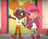 During her stay in Big Apple City, Strawberry finally got to meet her idols, to very mixed results. In Season 1, she met Kiki KeyLime, who she impressed with her baking, enough to be invited onto Kiki's show, "Bite of the City". Kiki is always friendly and kind to Strawberry, and would even end up falling in love with Aunt Praline, much to Strawberry's excitement. In Season 2, she met the Peculiar Purple Pieman... who despised her for her baking talent and tried to sabotage her to avoid her becoming a competitor to his pieshop franchise. Pieman and Strawberry clashed throughout the series, as she tried to foil his schemes to ruin her career. In Season 3, she was initially excited upon hearing Crabapple Jam became the new owner of the Berryworks, as she thought Crabapple was a fellow country berry who struck it big like she hoped to. Unfortunately, Crabapple turned out to be just as corrupt as Pieman, though to a subtler degree. While Strawberry did impress Crabapple with her baking talent, Crabapple tried to drive a wedge between her and her Berry Besties.