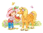 Honey Pie Pony is more of a companion than a pet, but Strawberry is her rider. Honey Pie is no ordinary pony. First of all, she talks. Secondly, she's been almost everywhere. Thirdly, she rarely stops talking about where she's been. She's a bit prone to exaggeration, too, so some of her stories get to be a bit incredible. She was fairly prominent at the beginning of the series, but as time passed, Honey became much less of a character, to the point where she eventually left the main cast by the final season.