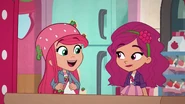 Strawberry got a job at the Berryworks, a hot spot for bakers to get discovered, where she runs the Extraordinary Berry bakery truck. She befriended the other Berryworks vendors, Orange Blossom, Lemon Meringue, Lime Chiffon, and Blueberry Muffin, who run food carts at the Berryworks. Later, she met a musician named Huckleberry Pie. This isn't to say she got off on the right foot with everyberry though. The assistant manager, Bread Pudding, acts cold and indifferent to her, Sour Grapes doesn't care for her at all, and Raspberry Tart, another baker at the Berryworks, becomes her biggest rival. These three were the Mean Berries, led by Raspberry Tart, as they tried to drive Strawberry out of the Berryworks. However, throughout Season 1, Strawberry and her Berry Besties got to know the Mean Berries better and developed friendships, slowly dropping their animosity toward one another. Raspberry Tart in particular, as Strawberry and her would bond over shared interests and their goals to become the best bakers in the city. In the end, the Mean Berries became Berry Besties as well, all of them now friends with Strawberry.