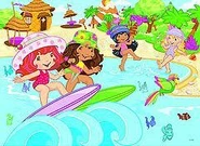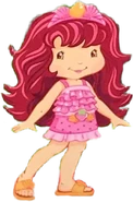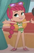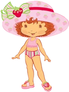 In summer episodes, Strawberry wears her usual strawberry-shaped beanie, a white tank top that frills out at the end with a pink hem, a strawberry-shaped necklace with a green ribbon, jean shorts, and pink sandals.