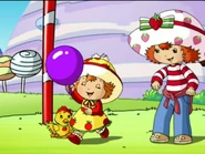 In the "Sweet Dreams Movie", she encounters The Peculiar Purple Pieman of Porcupine Peak and Sour Grapes, a sibling duo of evildoers who try to take over Strawberryland. After the events of the film, Strawberry would occasionally have to deal with Pieman and Sour and try to foil their schemes. Strawberry and friends' kind nature eventually gets through to Sour Grapes, who warms up to the kids and becomes nicer, and would even try to dissuade Pieman from a few of his schemes.