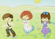 Strawberry, like her previous incarnation, is a little girl who lives in Strawberryland with her pet cat Custard. This time, her house is a bungalow shaped like a strawberry, and she also lives with her baby sister Apple Dumplin' and her mischievous dog named Pupcake. Strawberry frequently goes on adventures with her many friends in Strawberryland, Orange Blossom, Huckleberry Pie, Ginger Snap, and Angel Cake. When she's by herself, she usually tends to her garden, bakes, or recounts a memory of an adventure she went on, which usually serves as the framing device for many episodes.