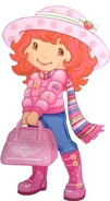 In winter episodes, Strawberry wears her usual outfit, with the additions of a blue winter jacket with a pink collar/cuffs and two strawberry-shaped buttons instead of her denim jacket, red winter gloves with pink fingertips, green-and-white striped pants, and a winter beanie shaped like a strawberry with a green pompom on the end.