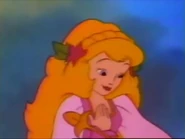Pieman developed a crush on her the moment he laid eyes on her, though she is oblivious to this. She manages to convince the Pieman to stop the clouds due to how swoon he is over her, but their problems were not solved yet as she hears that the Berrykins got kidnapped by a Berry Bird and the clouds were growing faster. She goes back to confront him and Strawberry tells her a plan, she has to try to stop or slow down the clouds while Strawberry gets the Berrykins. She manages to clear all of the clouds before it rained. After the incident, she sings a song for the Berrykins to sleep and requests for Strawberry and her friends to take care of the Berrykins for her and departs. For accepting her request she gives Strawberry and presumably her friends long hair.