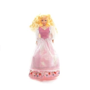 The Berry Princess has a more human-like appearance when compared to the other characters, having a tall, slender build unlike the children's chubby features and The Peculiar Purple Pieman's cartoonish physique. She has golden-blonde hair, with a braid going across the top of her head. She has a purple flower on either side of her head. She possesses Caucasian skin, lavender purple eyes, and pink lips. She wears a long pink dress. It has a light pink bodice with long, gold-trimmed, pink sleeves and a poofy, light purple skirt. She carries a pink star wand.