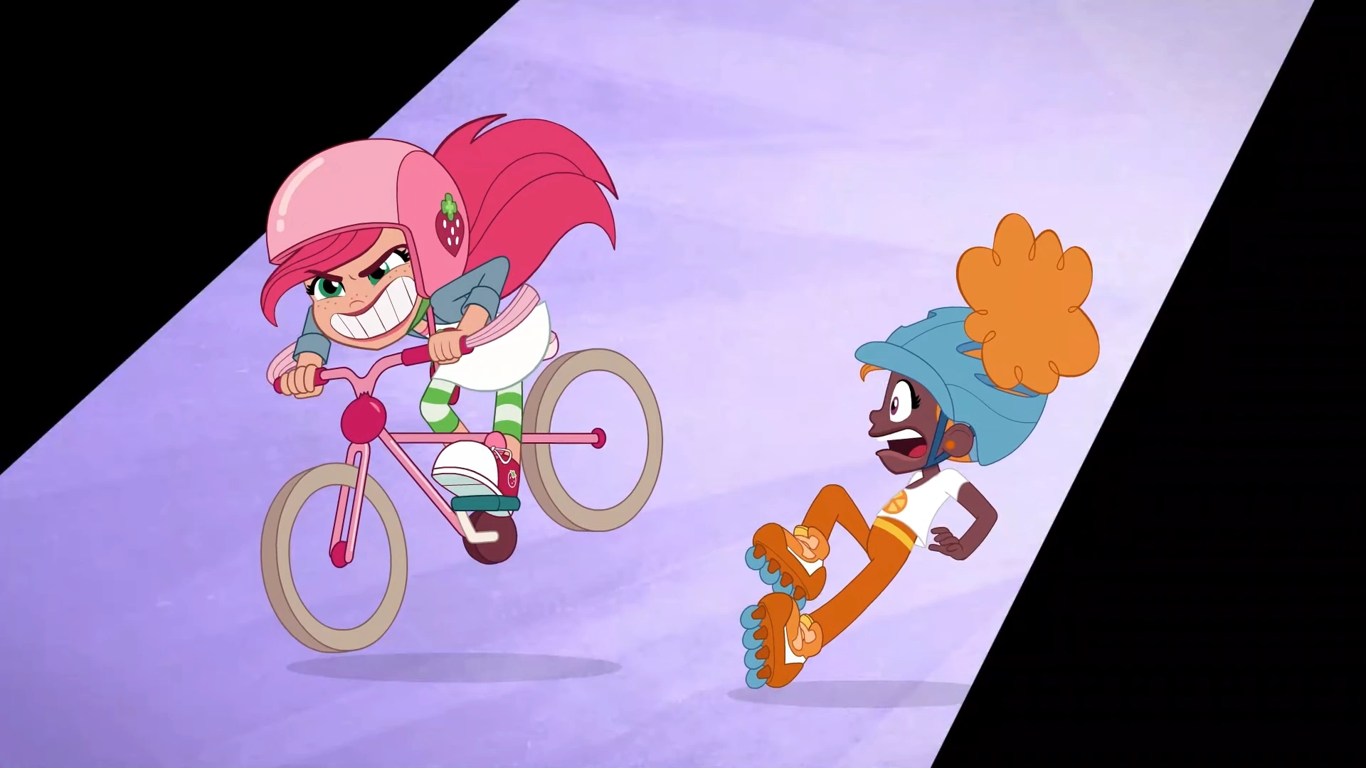 A traffic light turns red, causing many cars, and Strawberry's bus, to stop. Orange runs across the street, playfully telling Strawberry that she'll save some berries for her. Strawberry gets out of the bus and runs after Orange, before stopping and turning around to head in the correct direction. Both girls run into the Funnelcake System, where they end up being squished together in the crowded subway car. They have an awkward conversation about how crowded the trains are, as the camera zooms out to show the crowded train as the two look around. The girls run out of the Funnelcake system, but Strawberry sees Orange using rollerblades, pointing out it's unfair. Orange counters that by pointing out Strawberry took a bus, which Strawberry admits is a good point. Strawberry notes to herself that she needs wheels to catch up to Orange, and notices a pink bicycle.